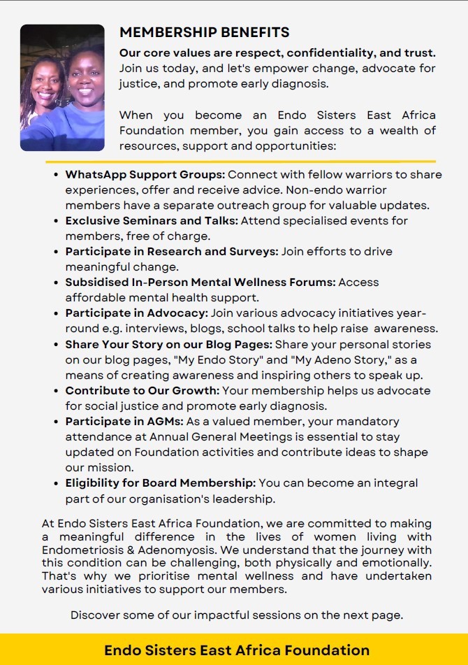 As a committed board member of Endo Sisters East Africa, I am passionate about transforming the landscape of human resources as a culture champion currently working as a people & culture generalist. My mission is to reshape HR practices while also advocating for early diagnosis of endometriosis and other menstrual disorders. As an Endometriosis and Adenomyosis warrior myself, I draw from personal experience to raise awareness and support initiatives that empower individuals facing similar health challenges. Through my role at Endo Sisters East Africa, I strive to foster meaningful change and amplify the voices of those affected by menstrual health issues.